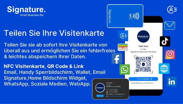Teilbar in Sekunden – NFC, QR, Kurzlink, WhatsApp, SMS, E-Mail, Social.